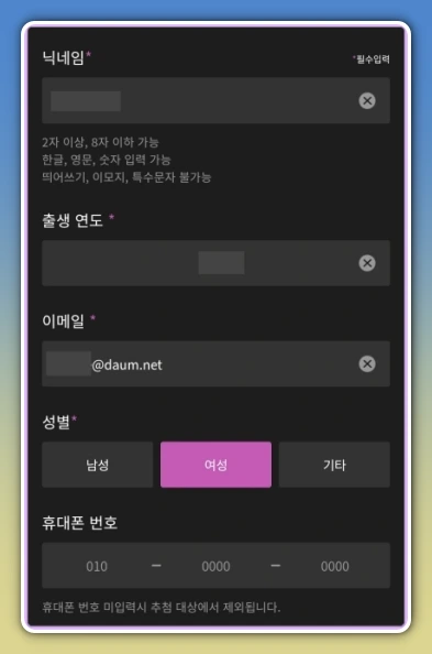 - 회원가입 시 정확한 정보 입력을 해두어야, 이벤트 당첨 시 상품 수령이 가능합니다.