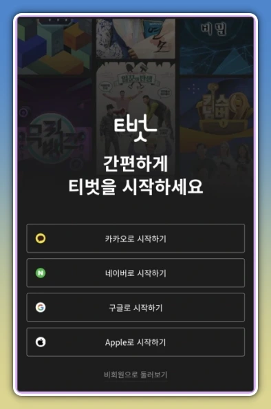 - 티벗 앱 실행 후 간단한 로그인 또는 회원가입 진행